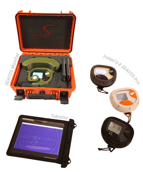 - une tablette (ou un ordinateur) permettant à l’observateur en surface une visualisation interactive enrichie et un échange de messages (individualisés dans le cas du SEAYOS Monitor).