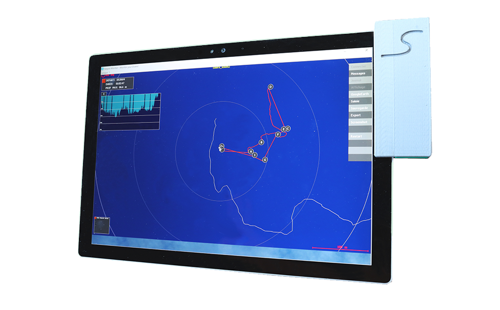 The enhanced interactive display is carried out via the SEAYOS Monitor interface (identical to that supplied with the SEAYOS Pro-M), which also offers other functionnalities such as direct data transfer during a dive to GoogleEarth, accessing the exchanged messages log, recording the current session, importing sessions already carried out, etc.