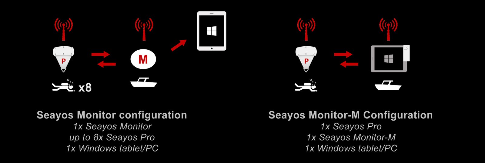 The SEAYOS Monitor-M can only track one diver (equipped with a SEAYOS Pro) at a time, but it is more compact and economical than the SEAYOS Monitor.